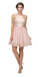 Eureka Fashion 6026 Champagne Homecoming Short Dress with Gold Appliques