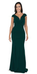 Cap Sleeved Green Long Formal Dress V-Neck and Back