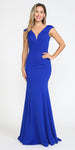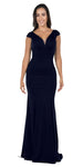 Cap Sleeved Navy Blue Long Formal Dress V-Neck and Back