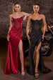 Ladivine CC463 Strapless Sweetheart Fitted Satin Skirt Gown