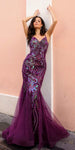 Nox Anabel C1416 Long Sequin Embroidery V-Neck Open Back Mermaid Gown