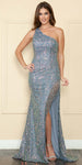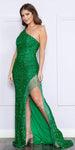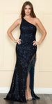 Imagine yourself wearing this beautiful long fitted formal dress by Poly USA | Ed Young 8984. This sleeveless floor length sequin/velvet dress has an asymmetrical neckline and features fringe embellishment along the side leg slit and strappy back. An ideal full-length dress for prom, awards ceremony or any other formal occasions.