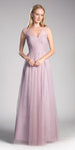 Classic A-line silhouette floor length formal dress by Ladivine ET320. Pleated bodice with a combination of sweetheart and illusion V-shape neckline. The back with zipper is also in V-shape style. This sleeveless gown is an elegant outfit for any formal events.