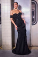 Ladivine CM387 Off the Shoulder Sculpted Beaded Bodice Fitted Gown