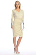 Stay stylish and sophisticated in this Celavie 6549-S chiffon skirt dress. Featuring a beautiful lace floral pattern top with elegant sequin embellishments and a fitted V-neckline, this dress is perfect for a mother of the bride or wedding guest. Made in the USA, it also offers a comfortable fit with its long sleeves and back zipper. Look stunning at any event with this knee length dress.