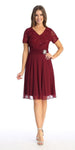 Celavie 6320-S - Knee Length Red Dress With Short Sleeves Lace Bodice Side View