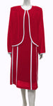 Introducing the Hosanna 5539 2-piece chiffon dress set, made in the USA for special occasions. This modest set includes a long sleeve jacket and knee length dress with an elastic waistband for comfort.