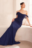 Ladivine Amoris T705 Off Shoulder Fitted Bridesmaid Gown - Navy