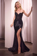 This fitted gown by Ladivine KV1112 features a strapless sweetheart neckline with a sheer, lace-appliqued corset bodice for a captivating and elegant look. The structured bodice offers enhanced support, while the satin skirt creates a flattering fit-and-flare silhouette. Perfect for prom, formal events, and black-tie occasions, this dress exudes timeless sophistication.