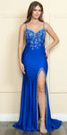 Imagine yourself wearing this beautiful long fitted formal dress by Poly USA | Ed Young 9122. This sleeveless floor length span jersey gown has a sweetheart neckline with spaghetti straps and features an embellished rhinestone bodice which also accents the front leg slit. A mid-back with zipper and sweep train rounds out the beauty of this dress. An ideal full-length dress for prom, awards ceremony or any other formal occasions.