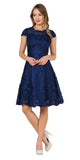 A-line Short Sleeves Appliqued Knee Length Cocktail Dress Navy Blue