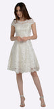 A-line Short Sleeves Appliqued Knee Length Cocktail Dress Off White