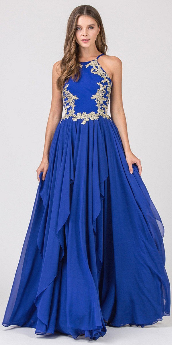 Eureka Fashion 6036 A-line Tiered Long Prom Dress Appliqued Bodice Royal Blue