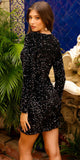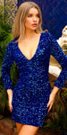 Amelia Couture BZ029S Short Fitted Long Sleeve Velvet/Sequin Cocktail Dress