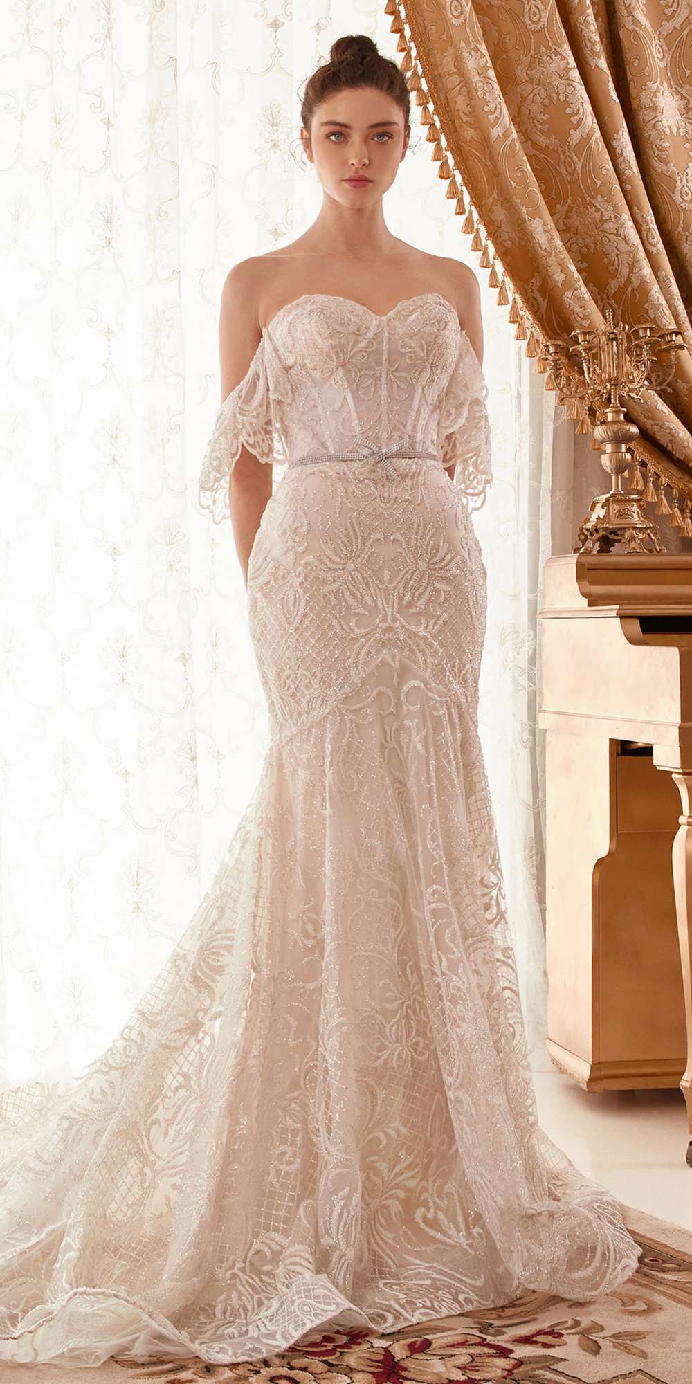 Andrea & Leo A1104 Long Lace Off The Shoulder Mermaid Bridal Gown