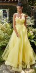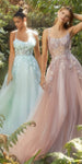 Andrea & Leo A1142 Floor Length Floral Applique A-Line Tulle Gown