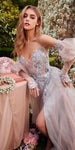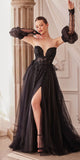 Introducing the enchanting A1303 ball gown by Andrea & Leo. Elegantly crafted with layers of glitter tulle, this formal gown features a timeless romance with its sheer lace applique bodice and plunging V-neckline. The crisscross lace-up side bow adds a whimsical touch, while the leg slit and removable puff sleeve gloves complete this fairytale masterpiece. This formal dress is definitely a one-of-a-kind long dress for red carpet events, pageant, prom or in any other formal occasions!