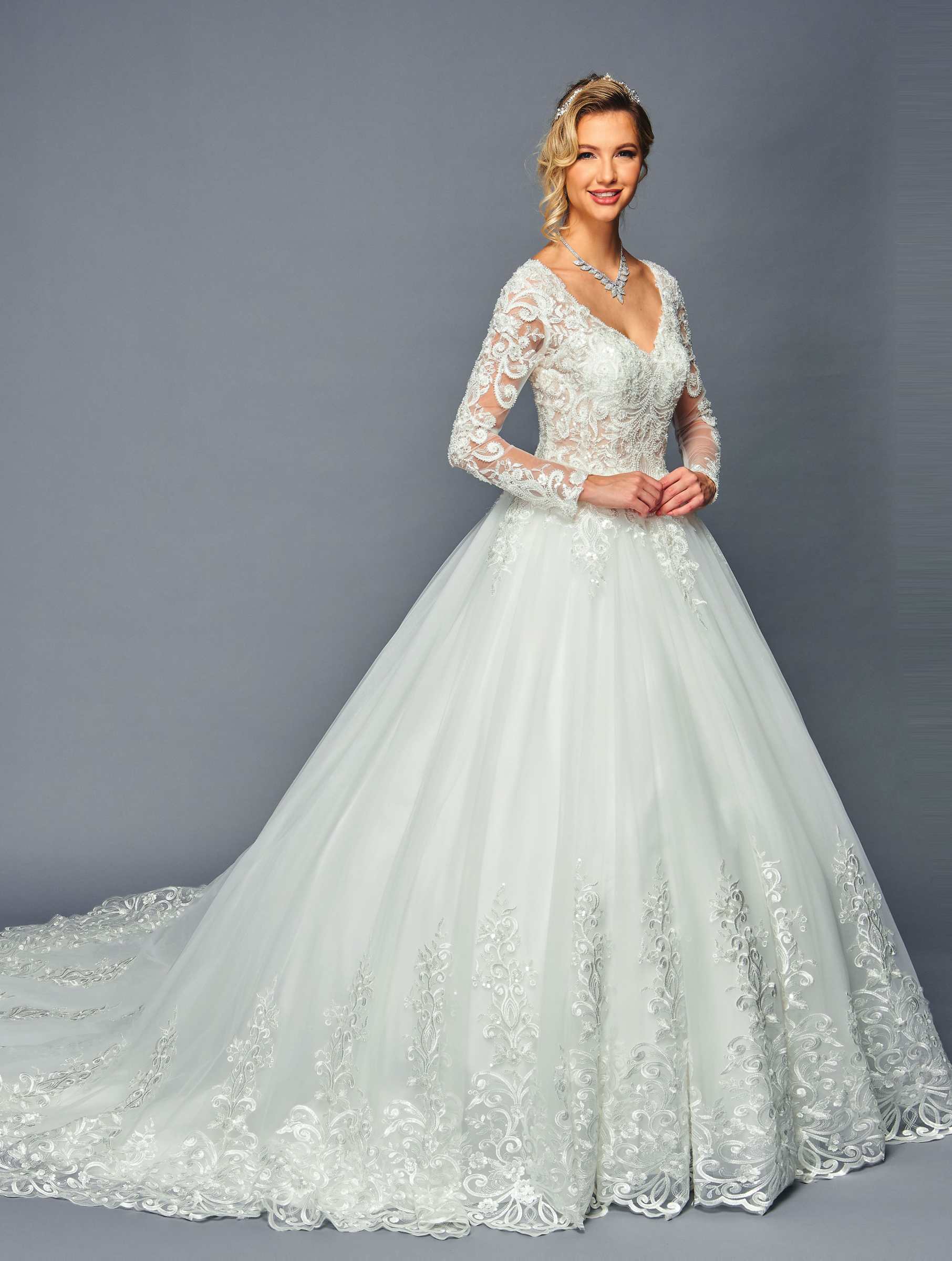 DeKlaire Bridal 476 Floor Length Long Sleeve A-Line V-Neck Wedding Ballgown