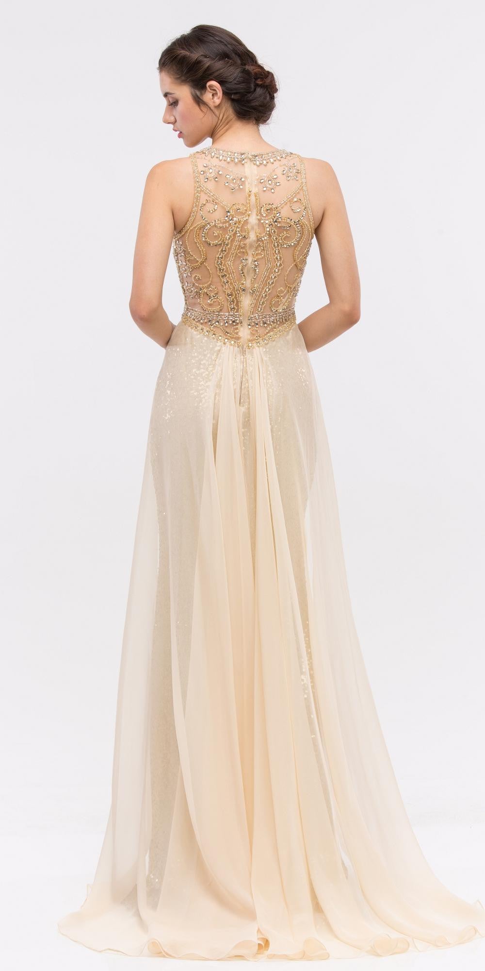Eureka Fashion 3335 Illusion Sequins Prom Gown Sleeveless with Sheer Train Gold