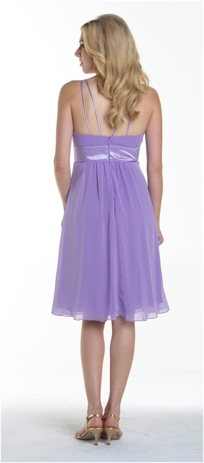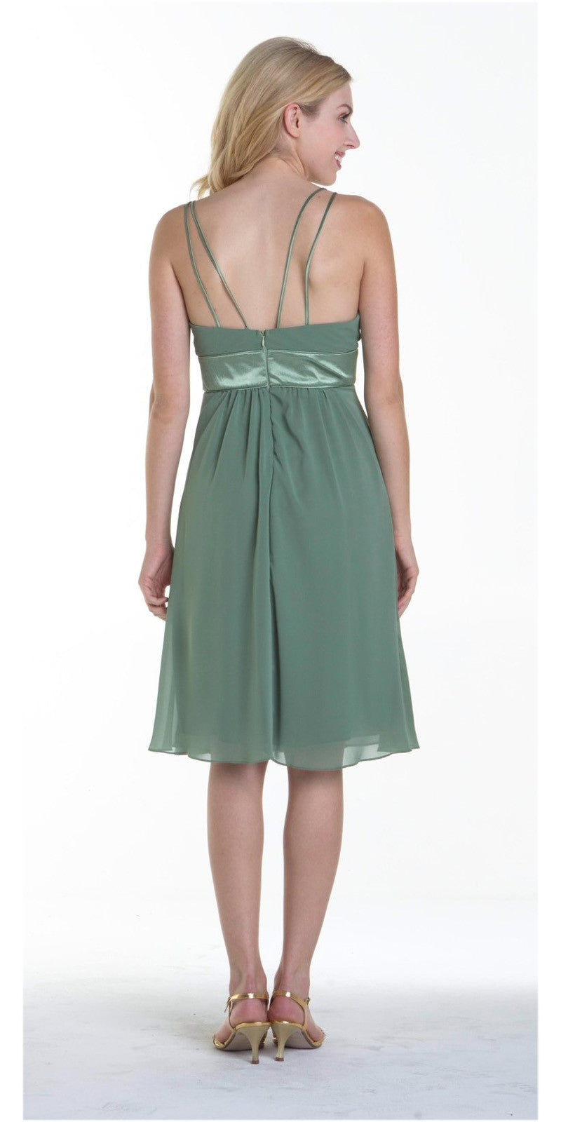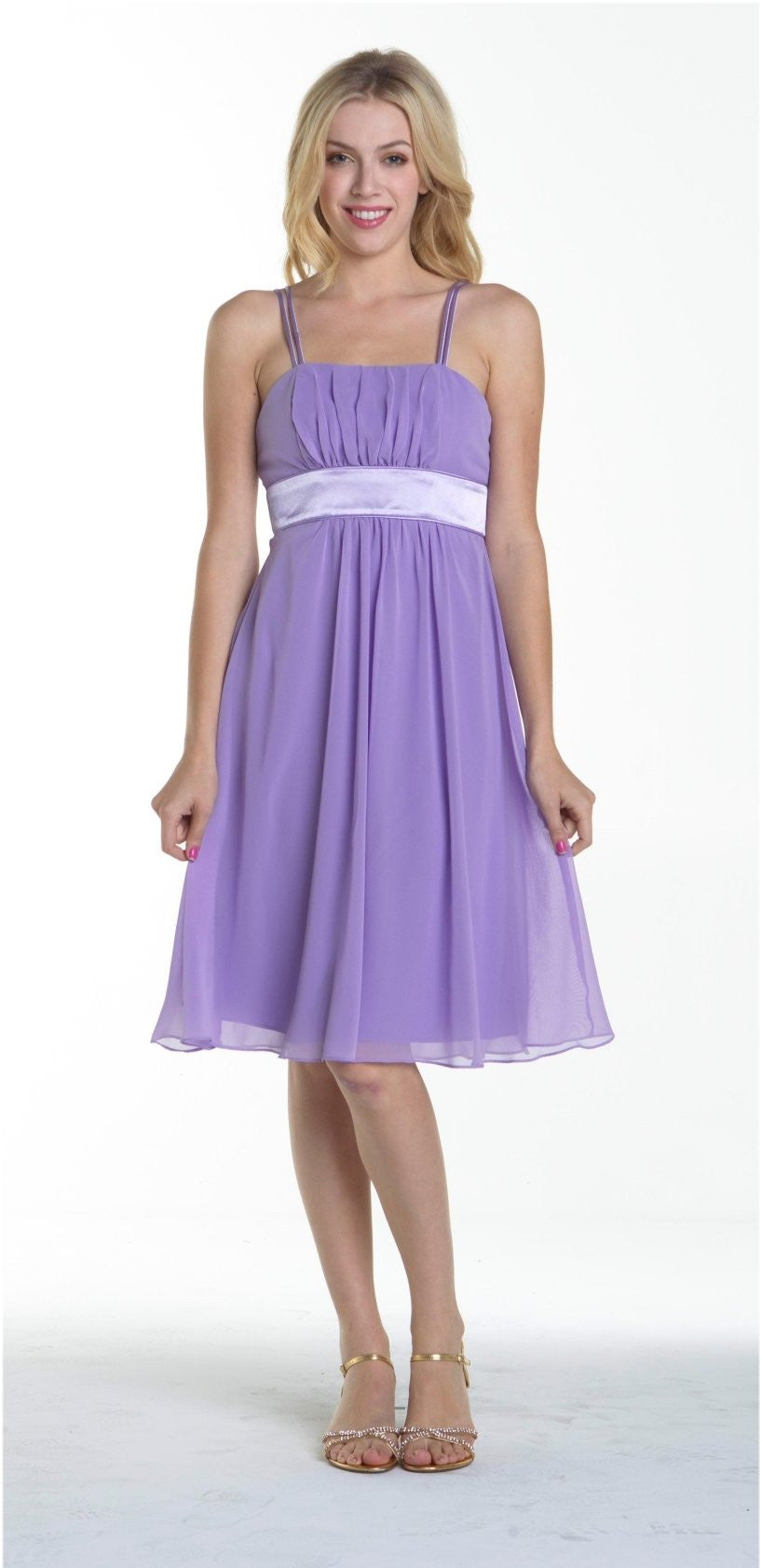 CLEARANCE ITEM - Imagine yourself wearing this short A-line formal dress by Poly USA | Ed Young 2857. This classic knee-length formal dress features spaghetti straps, square neckline and a satin empire waistband. This beautiful knee length dress is absolutely fabulous for bridesmaid, pageant, prom or in any other formal occasions!