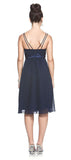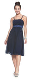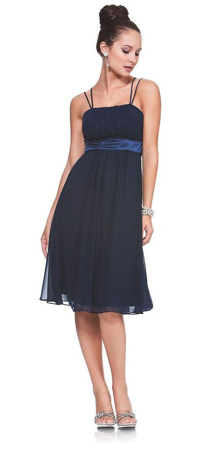 Knee Length Spaghetti Strap Navy Blue Graduation Dress Chiffon