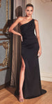 Look and feel luxurious in the ultra-feminine B8401 prom dress by Ladivine. It features a fitted silhouette, one shoulder strap, high leg slit, asymmetrical neckline, and gathered side seam, all crafted from soft satin to hug your curves. Be unforgettable in this show-stopping gown.
