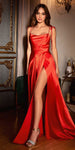 Imagine yourself wearing this beautiful floor length satin A-line evening gown for your next formal event. This sleeveless formal dress by Ladivine BD104 is part of the BrideMuse collection and implements spaghetti straps that tie at the top and features a cowl neckline, front leg slit and open back. An ideal full-length dress for red carpet events, bridesmaid, prom or in any other formal occasions!