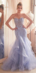 Ladivine CD332 Long Layered Tulle Tiered Mermaid Gown Sheer Boned Bodice