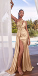Ladivine CDS454 Floor Length One Shoulder Keyhole Bodice Leg Slit Satin Gown