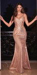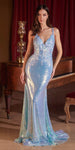 Ladivine CDS491 Long Liquid Sequin and Lace Fitted Dress