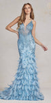 Nox Anabel C1111 Glitter Feather Skirt Mermaid Gown