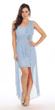 Spaghetti Strapped Short Chiffon Baby Blue Sheath Semi Formal Dress