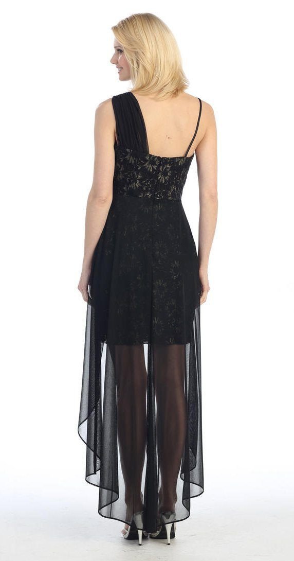 Spaghetti Strapped Short Chiffon Black Sheath Semi Formal Dress