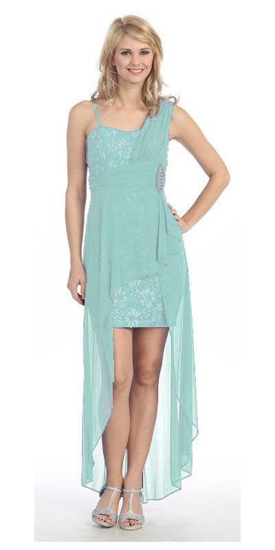 Spaghetti Strapped Short Chiffon Mint Sheath Semi Formal Dress