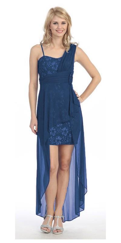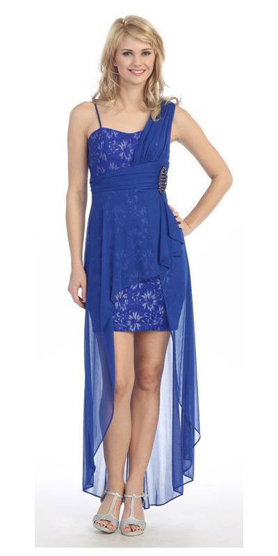 Spaghetti Strapped Short Chiffon Royal Blue Sheath Semi Formal Dress