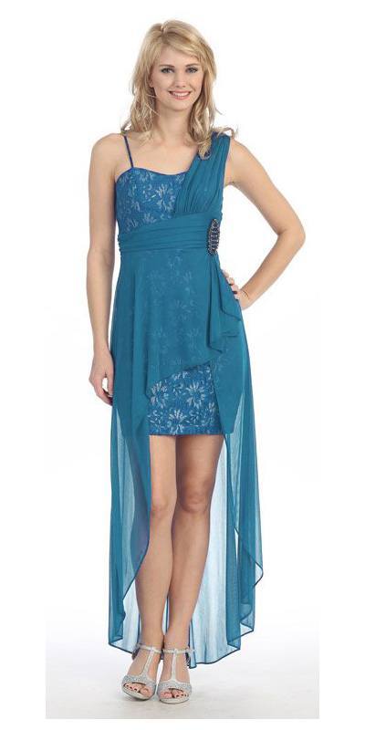 Spaghetti Strapped Short Chiffon Teal Sheath Semi Formal Dress