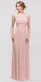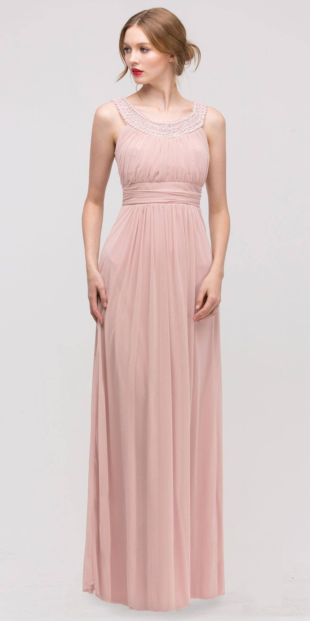 Studded Bateau Neckline Ruched Bodice Dusty Pink Evening Dress