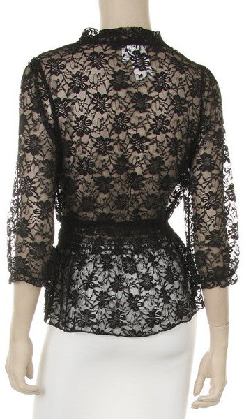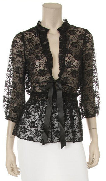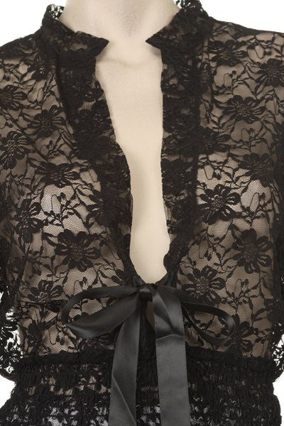 This beautiful short sleeve white lace top by COC #TN284 is cute and is the perfect compliment to your dress. This lace top has a has bow in the middle and sits just below the waist.