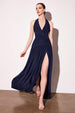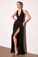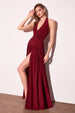 Astee T502 Halter Top V-Neckline Evening Gown with Leg Slit