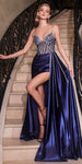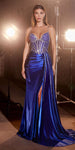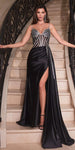 Ladivine CDS440 Floor Length Stretch Satin Sheer Bodice Sexy Gown
