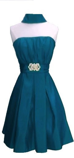 Red Bridesmaid Dress Strapless Taffeta Knee Length Jewel Waist