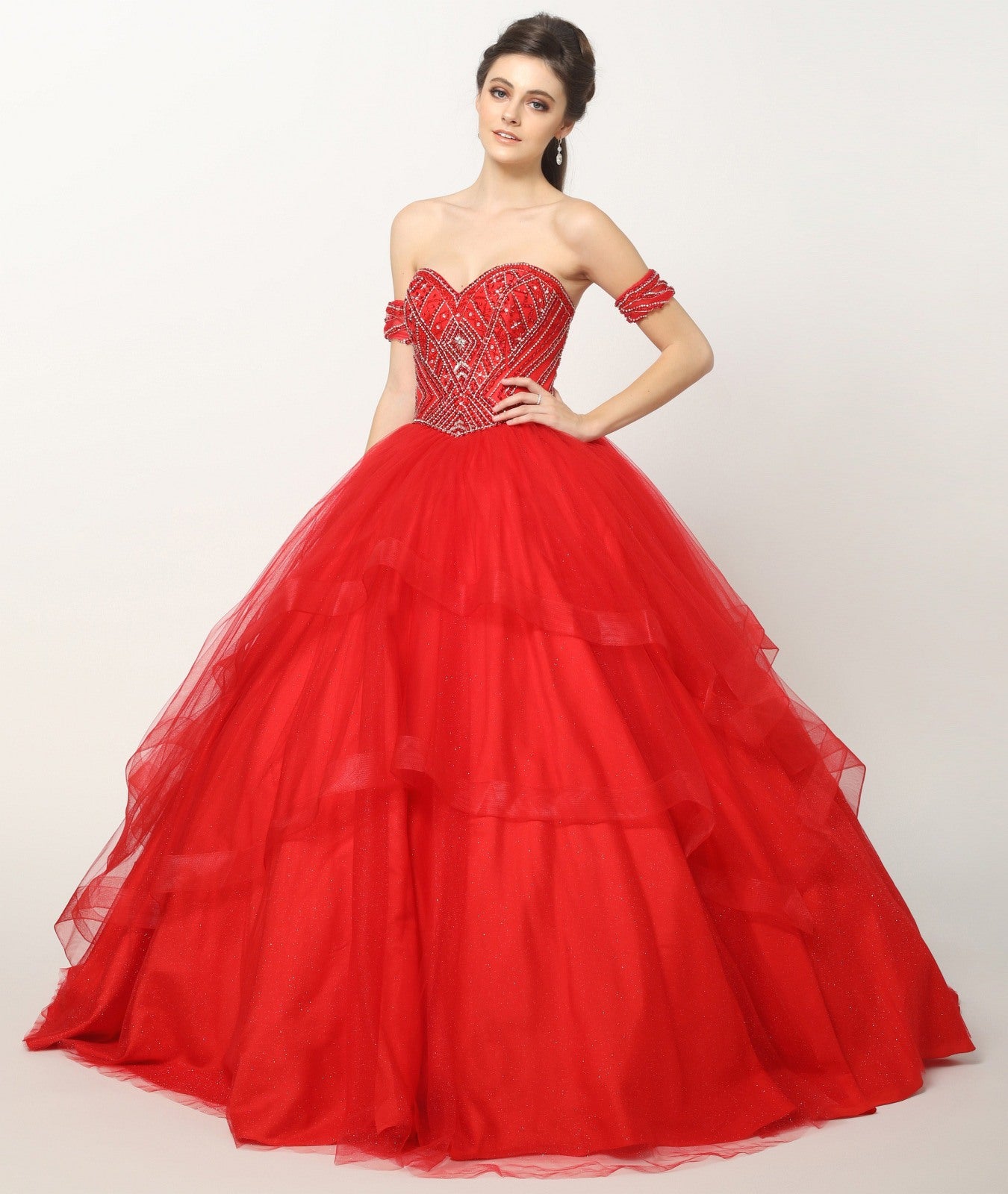 Juliet 1424 Quinceanera Ball Gown Tulle Skirt Arm Bands Beaded Bodice