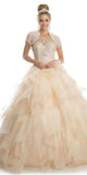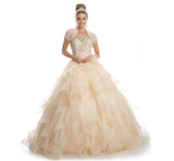 You will dazzle the evening in this magical poofy Cinderella A-line ballgown by Juliet 1423, which features a scoop neckline, an intricate beaded bodice, tiered layered tulle skirt and a corset lace up tie back. A beautiful poofy ruffle layered floor length A-line dress for homecoming, a quinceanera, prom or any special occasion!