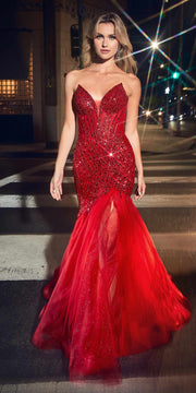 Ladivine CD0214 Strapless Pointed Cup Beaded Mermaid Dress