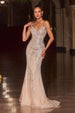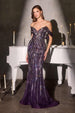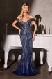 Radiating elegance from every angle, this fitted gown by Ladivine CD674 features a plunging neckline and sculpted silhouette adorned with intricate linear beadwork that catches the light beautifully. The sparkling sequin and crystal embellishments flow seamlessly over a soft tulle overlay, creating a captivating illusion of movement. Finished with a removable off-the-shoulder neckline and structured boning, this gown flatters the figure while offering timeless sophistication. Perfect for proms, galas, or formal evenings.
