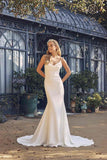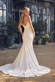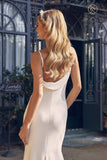 The ultimate silhouette for a special occasion, this floor-length, sleeveless wedding dress by Nox Anabel JE954 features a cowl neckline, spaghetti straps, an open cowl back, and a mermaid-style chapel train. Perfect for making a stunning statement on your special day. An ideal full-length dress for black tie, debutante/cotillion, wedding or in any other formal occasions!