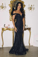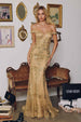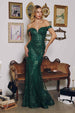 Amoris T613 Fitted Off the Shoulder Sequin Lace Sweep Train Gown