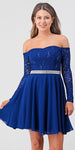 La Scala 25406 Off-Shoulder Long Sleeved Short Cocktail Dress Royal Blue