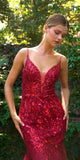 Imagine yourself wearing this fabulous floor length mermaid dress by Andrea & Leo A1118 This lovely evening gown is magical and features a plunging deep V-neckline with sheer insert panel, spaghetti straps and is embellished with sequins and embroidered floral pattern. This sparkly formal dress speaks glamour for red carpet events, pageant, prom or in any other formal occasions!