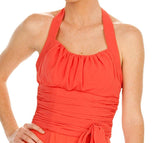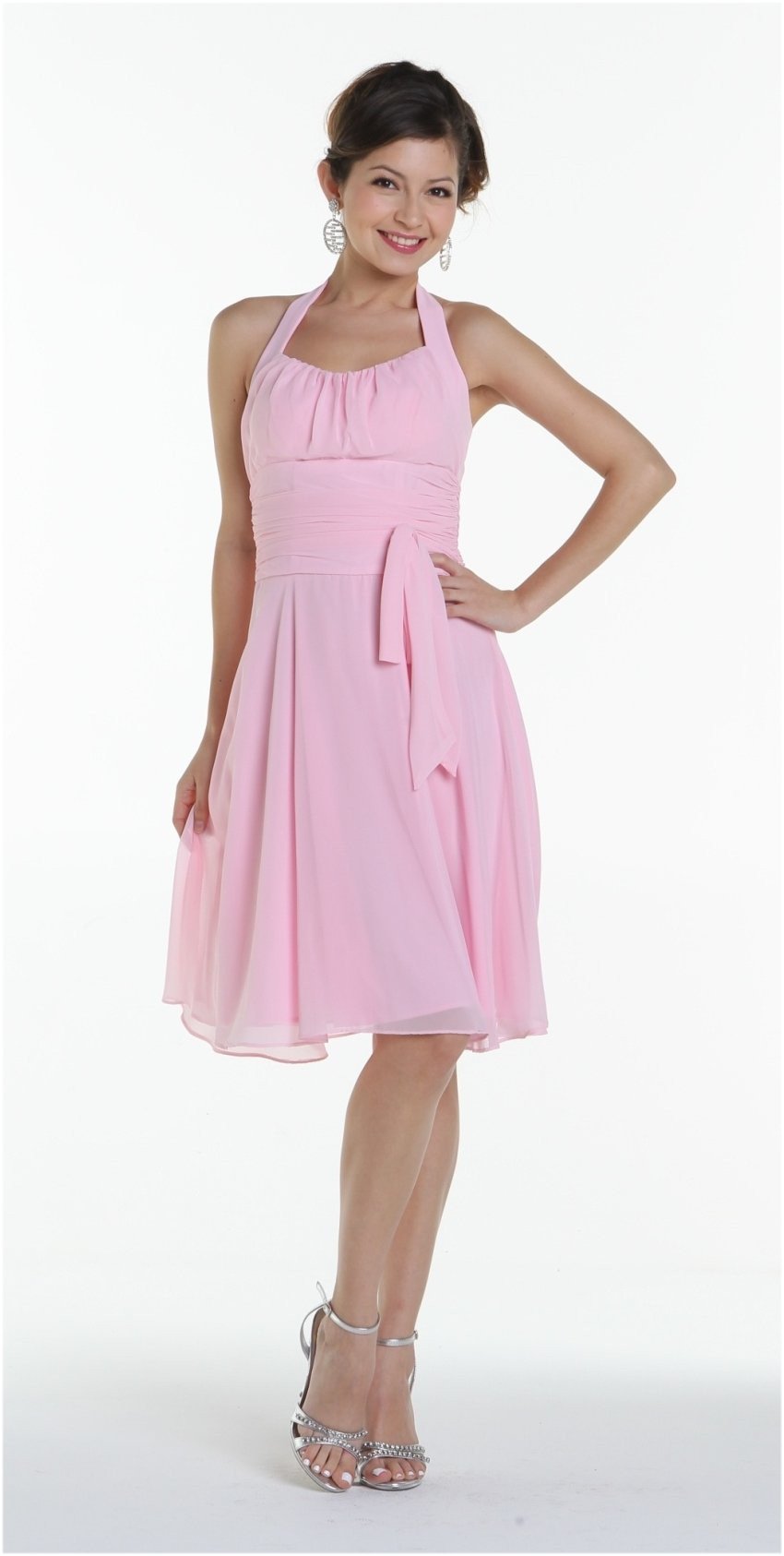 CLEARANCE ITEM - Imagine yourself wearing this short simple halter cocktail dress made from H.Multi Chiffon by Poly USA | Ed Young 2912. This is a mid-length dress, has a back zipper, and appears very simple with a flirty ribbon around the waist. This beautiful knee length dress is absolutely fabulous for bridesmaid, pageant, prom or in any other formal occasions!